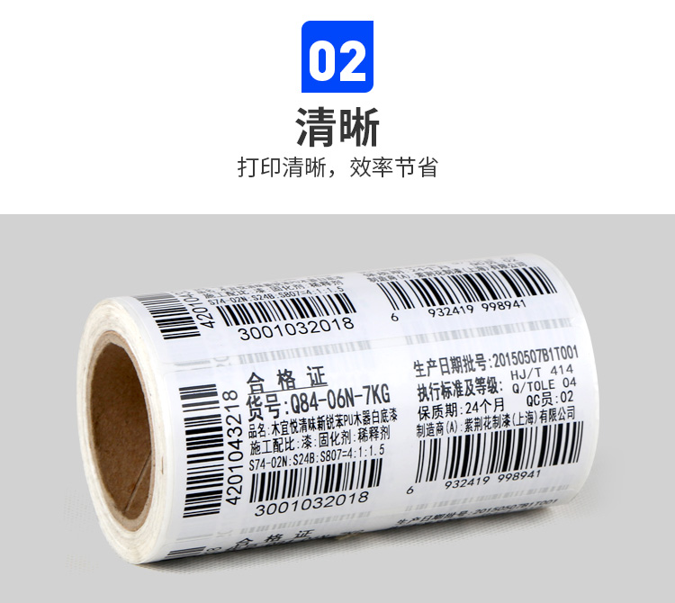 使用范围:广泛应用于超市、库存管理、服装吊牌、工业生产流水线,适用于促销及工业上的半高光彩色印刷。典型用途如化妆品标签,药标及食品工业标签。可贴于大多数基材的平面及简单曲面,包括纸板、塑料薄膜。